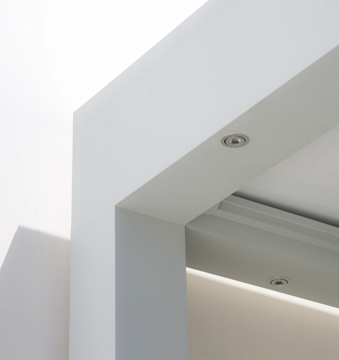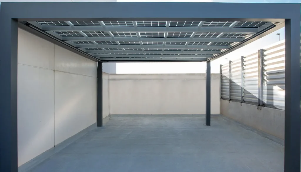 Fiksen aluminijasti nadstrešek z izoliranim sendvič panelom. Trajna zaščita pred dežjem, snegom in soncem — za terase, avtomobile in vrtove. Vsi mehanizmi skriti v konstrukciji.